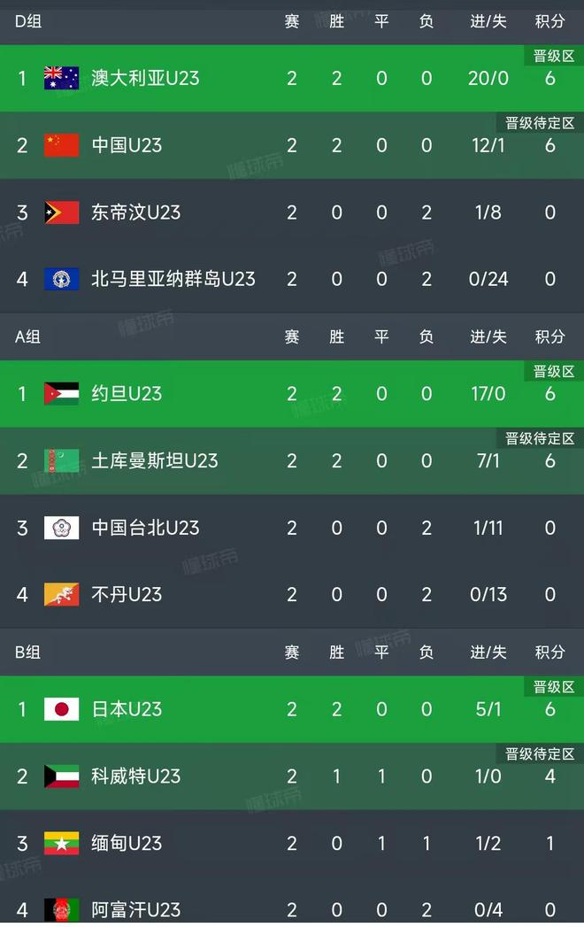 U23亚洲杯预选赛的第二轮结束了所有比赛,下面?