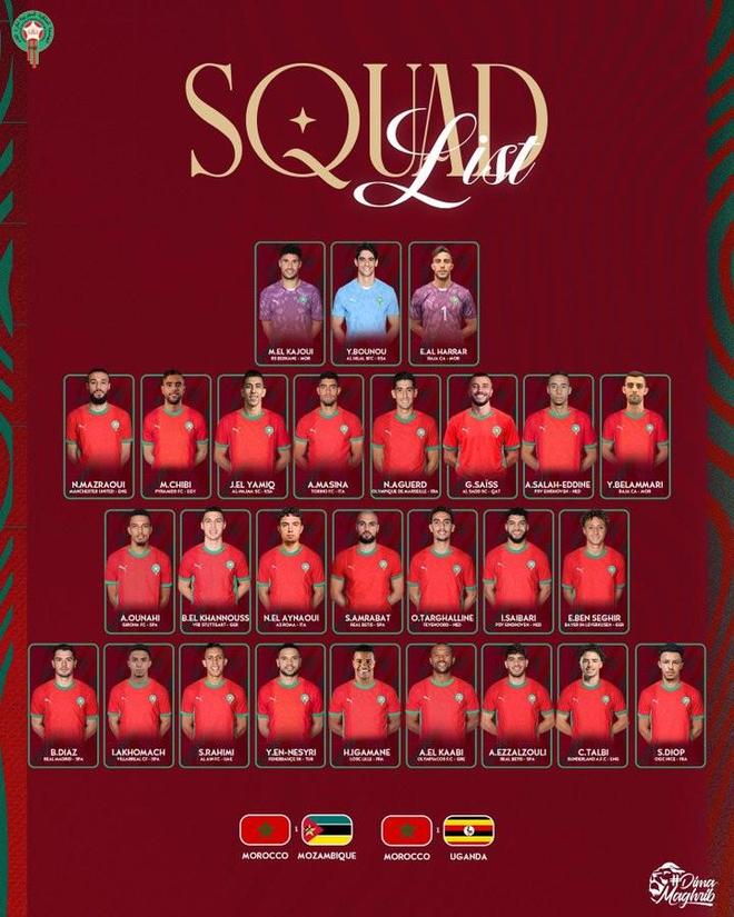 北京时间11月7日,摩洛哥国家队公布了新成员。阿什拉夫因伤缺席。贝努、马兹拉维、阿格鲁德、埃尔纳维、索菲扬·阿姆拉巴特、本·萨吉尔、布拉希姆·迪亚兹、恩·内斯里、阿布德和塔莱比入选。在11月的国际比赛中,摩洛哥队将与莫桑比克和乌干达进行两场友谊赛。摩洛哥国家队成员:门将穆尼尔·穆罕默迪(贝尔卡尼)、布努(利雅得新月)、迈赫迪·哈拉尔(卡萨布兰·拉贾)、后卫马兹拉维(曼联)、蒂比(金字塔)、贾瓦德·亚米奇(纳吉马)、马西纳(都灵)、阿格特(马赛)、塞斯(萨德)、萨拉赫·埃丁(埃因霍温)、尤素福贝拉马里(卡萨布兰卡拉哈),中场奥纳希(赫罗纳),哈努斯(斯图加特),埃尔纳维(罗马),前锋索菲安·阿姆拉巴特(皇家贝特),塔哈里纳(费耶诺德),萨瓦里(埃因霍温),本·萨吉尔(勒沃库森),前锋布拉希姆·迪亚斯(皇家马德里),阿霍马克(比利亚雷亚尔),索菲·安妮拉希米。 (艾因)、恩内斯里(费内巴切)、伊加马内(里尔)、卡维(奥林匹亚科斯)、阿布德(皇家B队)etis)、塔莱比(桑德兰)、索菲安·迪奥普(尼斯)【咪咕独家观看英超联赛】