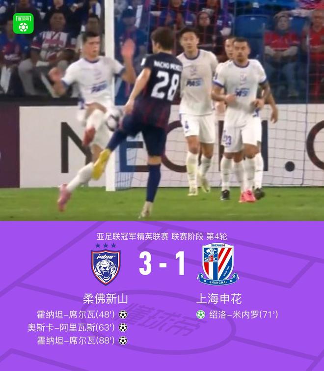 北京时间11月5日,亚冠精英联赛第四轮,新山队对阵上海申花队。上半场,鲍亚雄多次做出扑救。阿里巴斯击中横梁。席尔瓦在下半场率先进球。阿里巴斯远射扩大比分。米内罗主罚点球扳回一球。席尔瓦推射梅开二度。米内罗的进球被判无效。最终比分是新山3-1上海申花。重要事实:第47分钟,我们在下半场一开始就丢了一个球!霍纳坦席尔瓦推射空门,申花0-1落后!第63分钟,阿里巴斯禁区前停球后抽射攻门。新山2-0新华第71分钟重获胜利!徐惠阳进球,米内罗进球,申花1-2柔佛。第87分钟,乔纳森·席尔瓦禁区内射门得分。新华1-3新山。双方球员均参加了比赛。这场比赛大约是开始。第4分钟,鲍亚雄门前扑救,将霍纳坦·席尔瓦的进球挡出。第5分钟,奥斯卡·阿里巴斯远射破门。鲍阿雄扑救后击中门柱。第6分钟,乔纳森·席尔瓦抽射破门。鲍亚雄再次将球没收。第16分钟,马纳法右路突破,传球给吴曦,吴曦打在对手身上。第20分钟,阿里巴斯在手被挡出后立即将任意球射入球门,击中阿苏埃的头部。第一次犯规发生在第22分钟。贾罗禁区内转身抽射,但被判无效。第30分钟,鲍亚雄左侧小角度抽射再次扑出海洛。第38分钟,钟险些丢球。鲍亚雄飞身挡住了门德斯的射门。阿里巴斯的补射再次击中白球。第39分钟,安卫远射攻入球门。球没有落地作品。第45分钟+1,阿苏埃禁区后头球攻门。球稍微偏转了。第47分钟,下半场一开始我们就丢球了!乔纳森·席尔瓦推射空门 他们做到了,新卡0-1落后!第52分钟,安德烈·路易斯再次射门得分。阿苏埃与门将相撞,最初进球被判无效。第61分钟,阿里巴斯禁区右侧抽射破门。鲍亚雄将球扑出。第63分钟,阿里巴斯禁区前停球抽射入角。新山2-0申花。第66分钟,阿里巴斯禁区外远射破门。球有点高了。第71分钟我们重获胜利!徐惠阳进球,米内罗进球,申花1-2柔佛。第67分钟,米内罗赢得点球后想要与对方门将拼抢,双方爆发冲突。第81分钟,主裁吹罚了乌尔在米内罗争夺球权时。第87分钟,特谢拉和米内罗没有射门,双双吃到黄牌。乔纳森·席尔瓦禁区内推射破门。新华1-3新山。第90分钟和第4分钟,米内罗禁区内再次射门。裁判吹罚进球无效,因为马纳法犯规在先。球队阵容技术统计